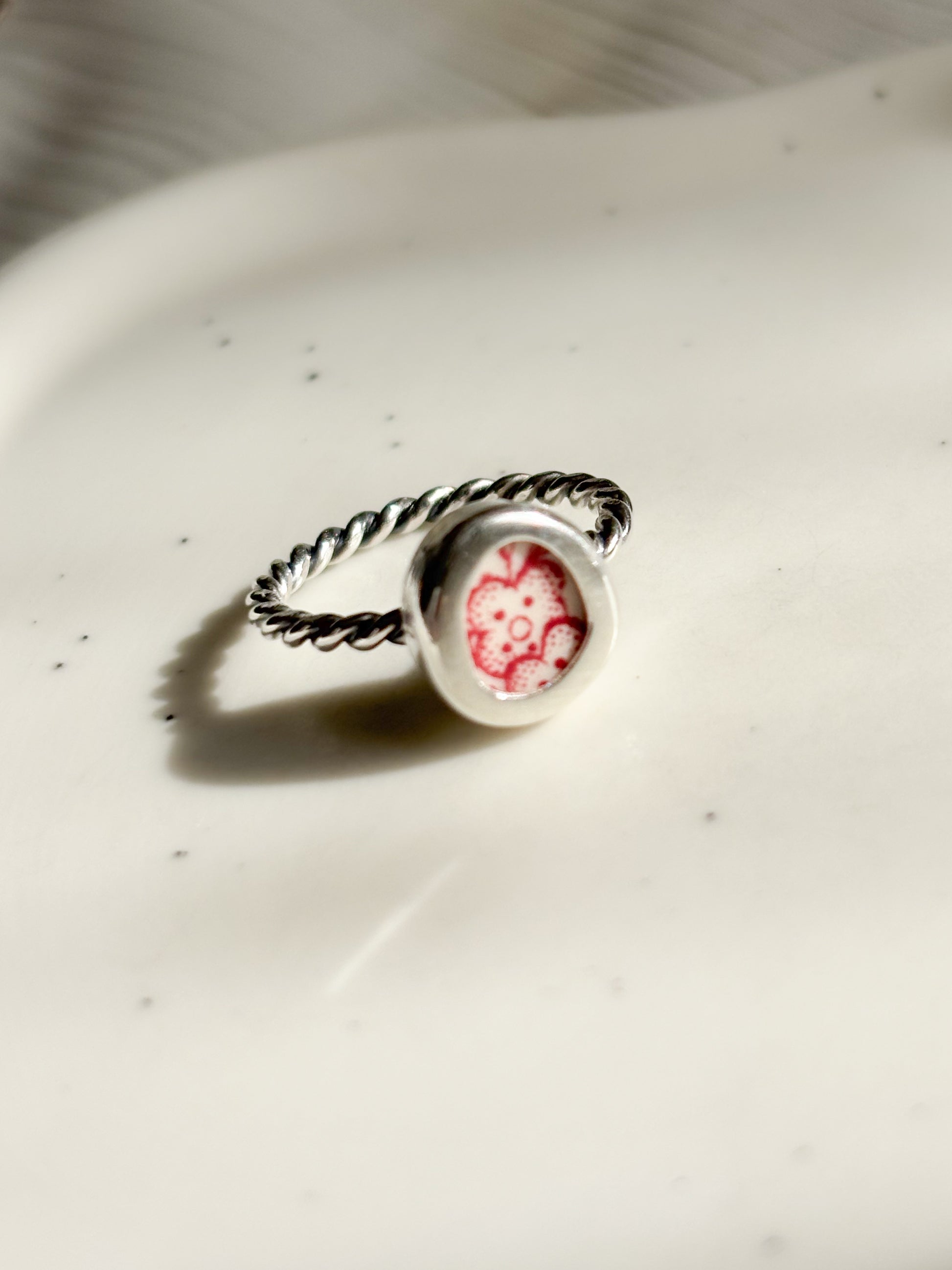 Cada joya nace de fragmentos de cerámica antigua, cortada, pulidos a mano y engastados en plata 950 como pequeños recuerdos que aún perfuman el alma.