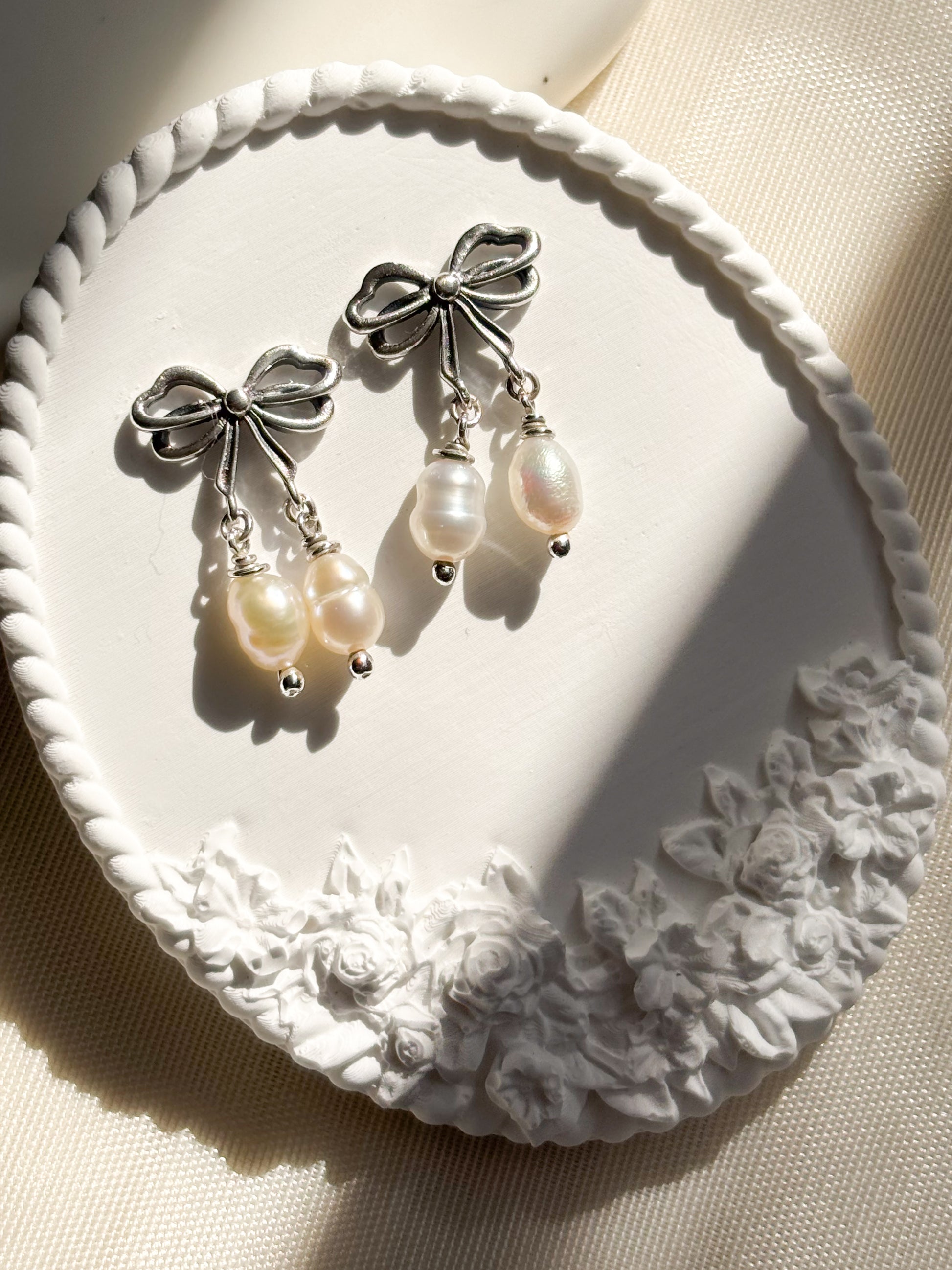 aritos en plata 950 y perlas que reflejan la suavidad de un nuevo amanecer.”