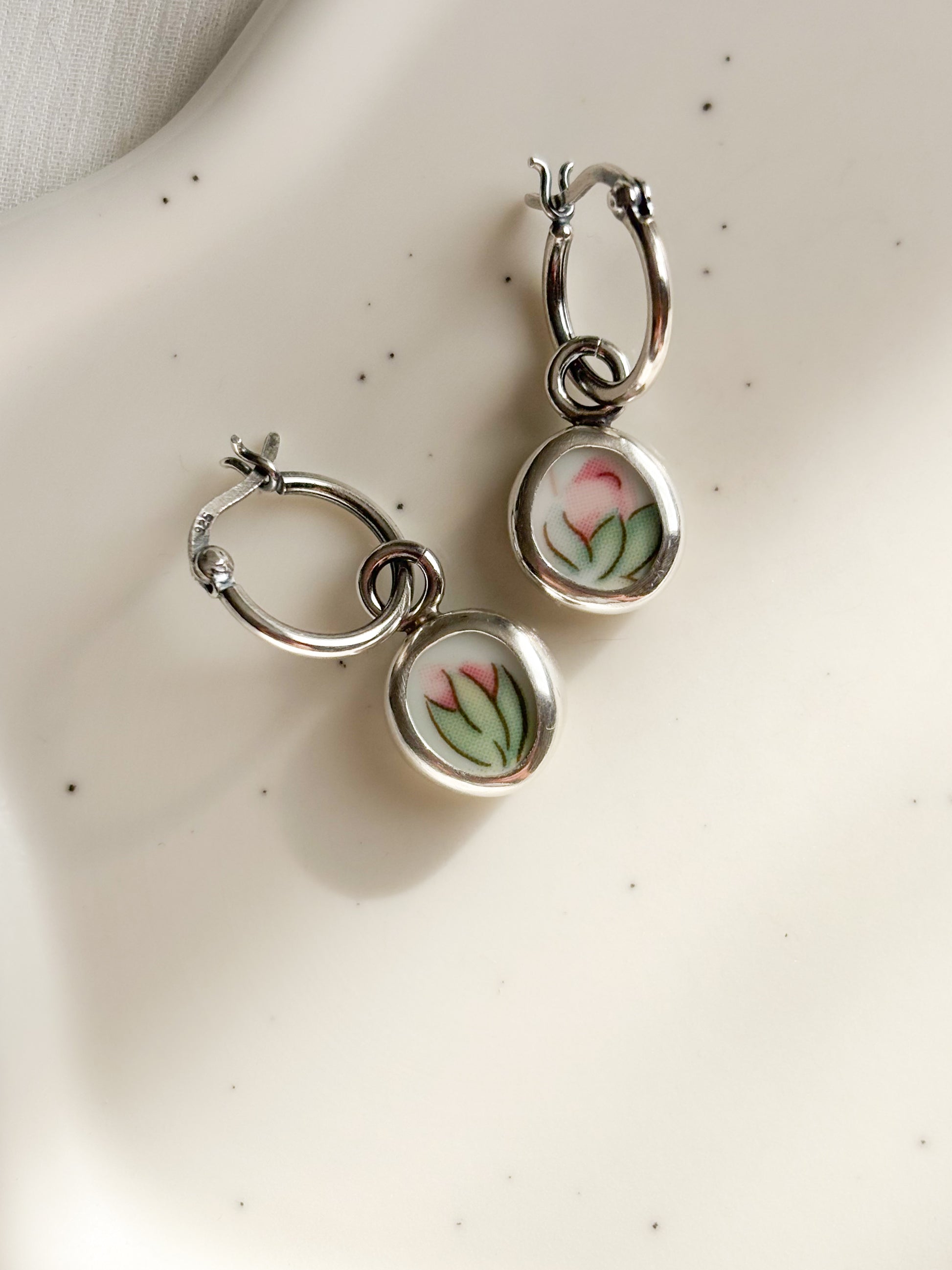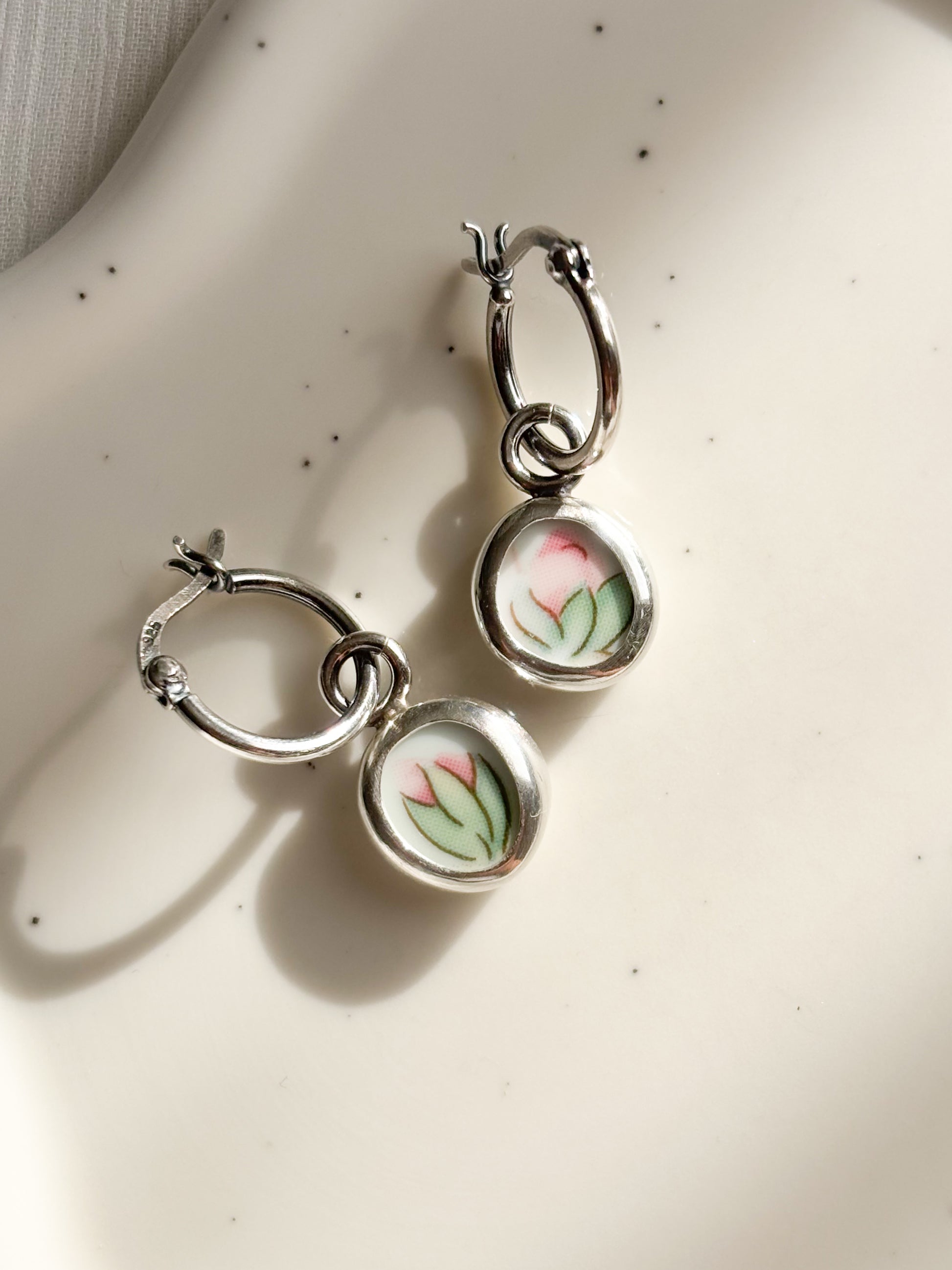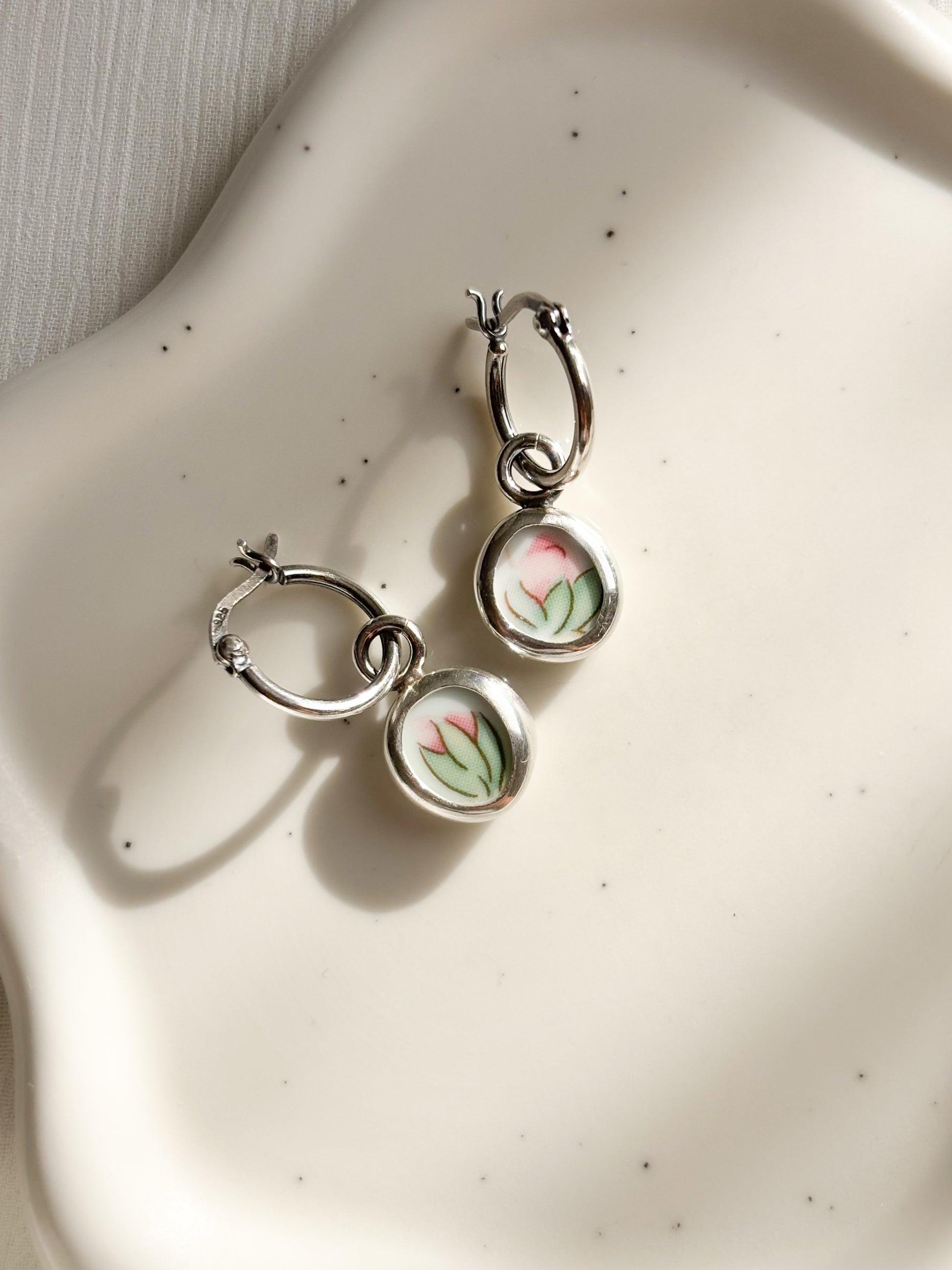 Cada joya nace de fragmentos de cerámica antigua, cortado, pulidos a mano y engastados en plata como pequeños recuerdos que aún perfuman el alma.