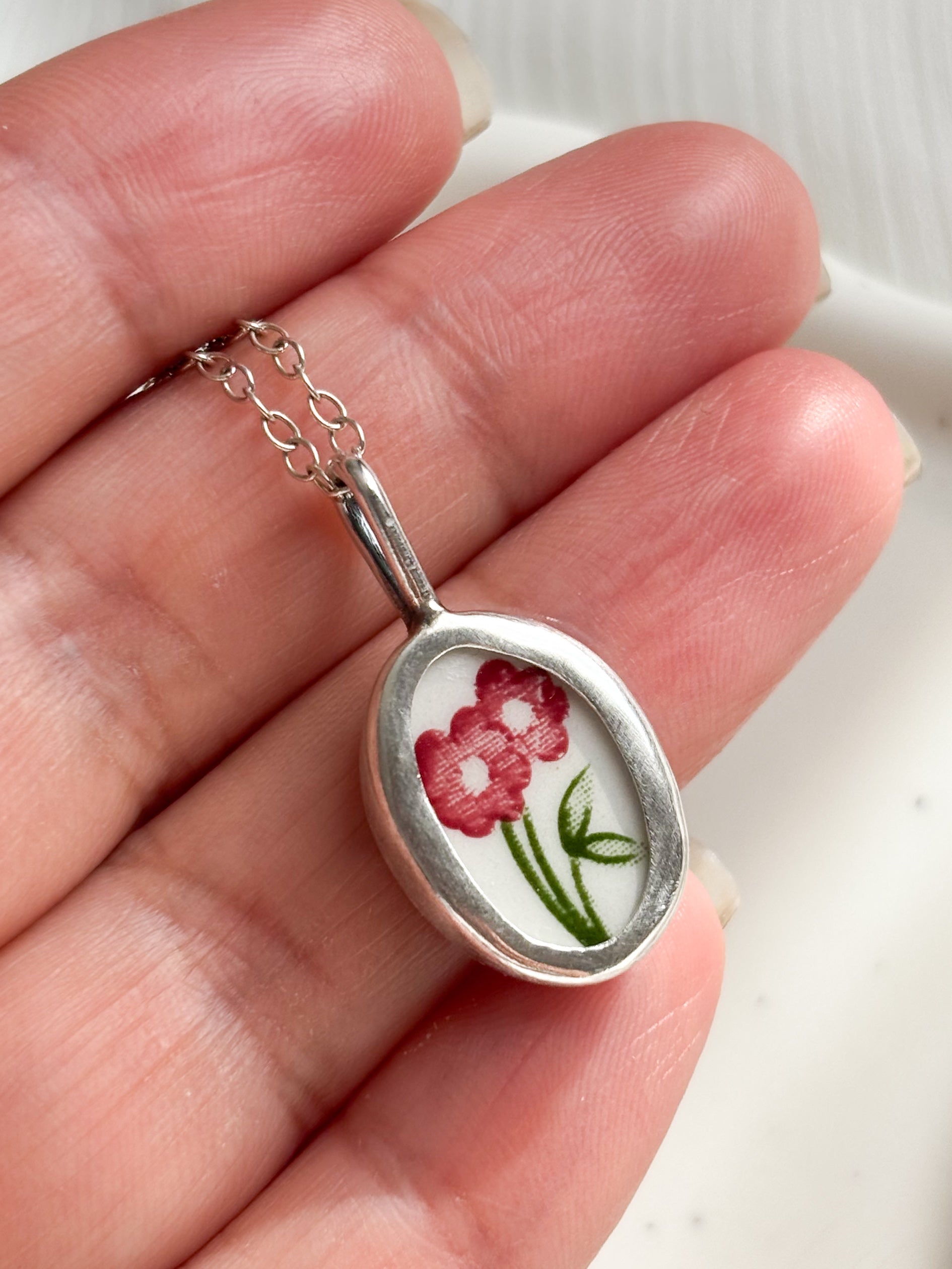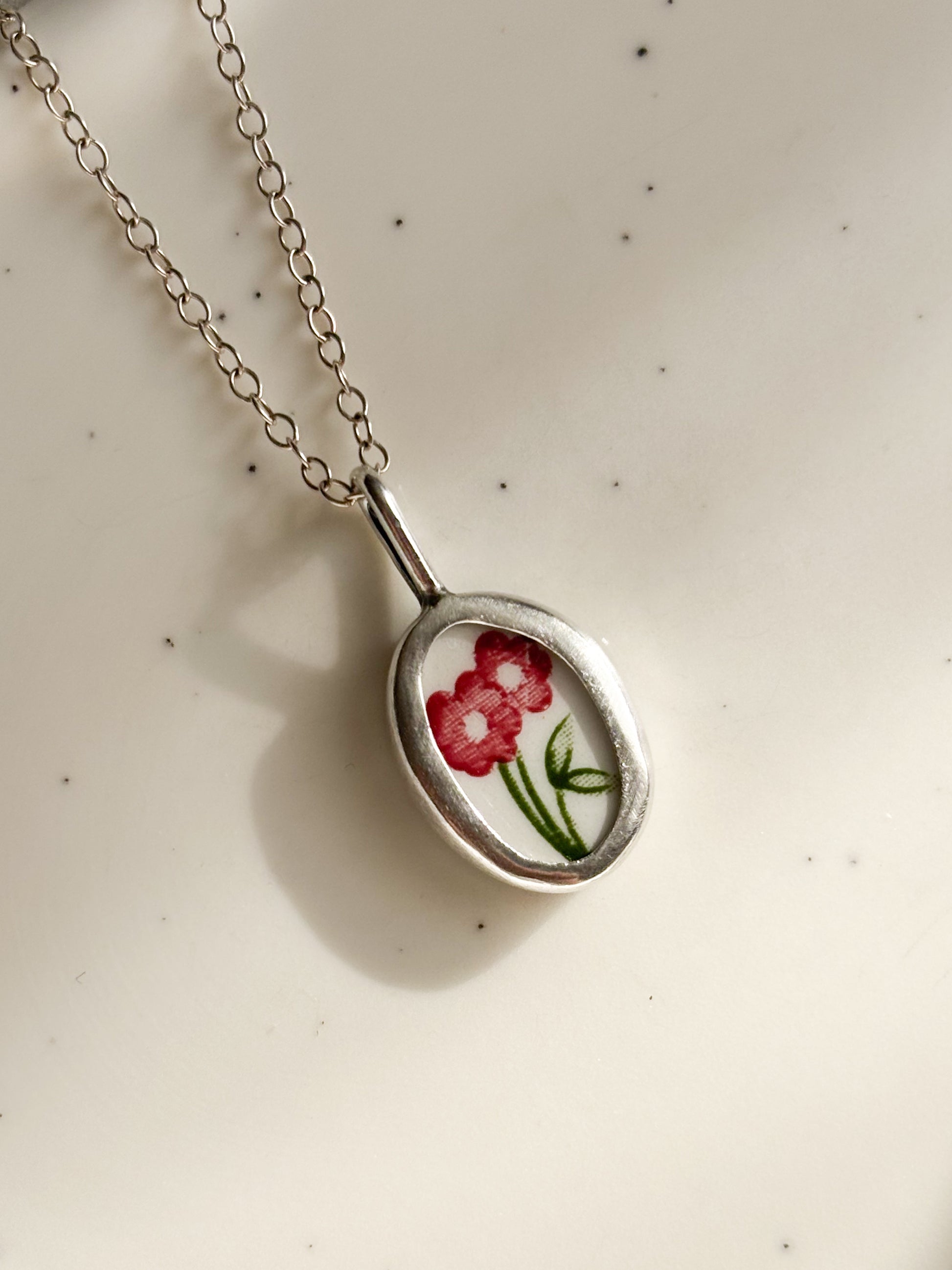 Cada joya nace de fragmentos de cerámica antigua, cortado, pulidos a mano y engastados en plata como pequeños recuerdos que aún perfuman el alma.