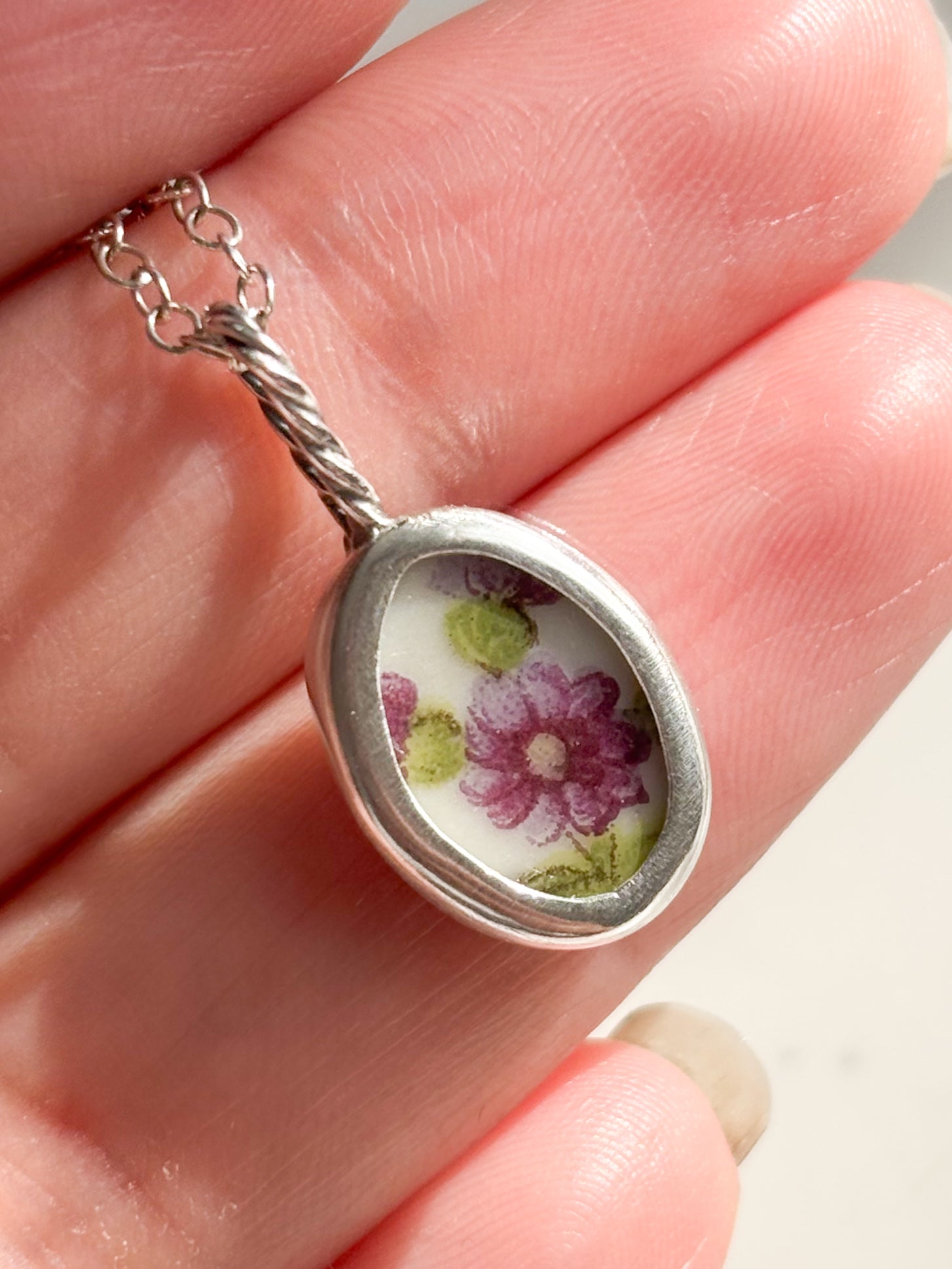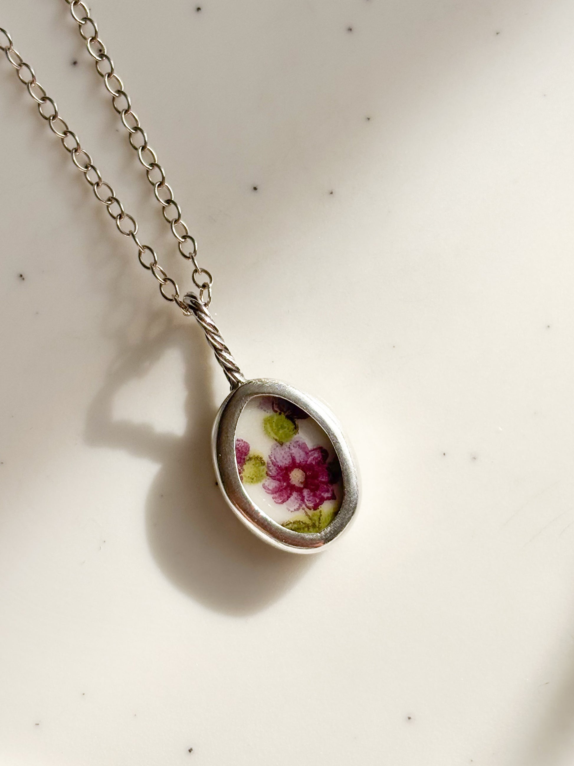Cada joya nace de fragmentos de cerámica antigua, cortado, pulidos a mano y engastados en plata como pequeños recuerdos que aún perfuman el alma.