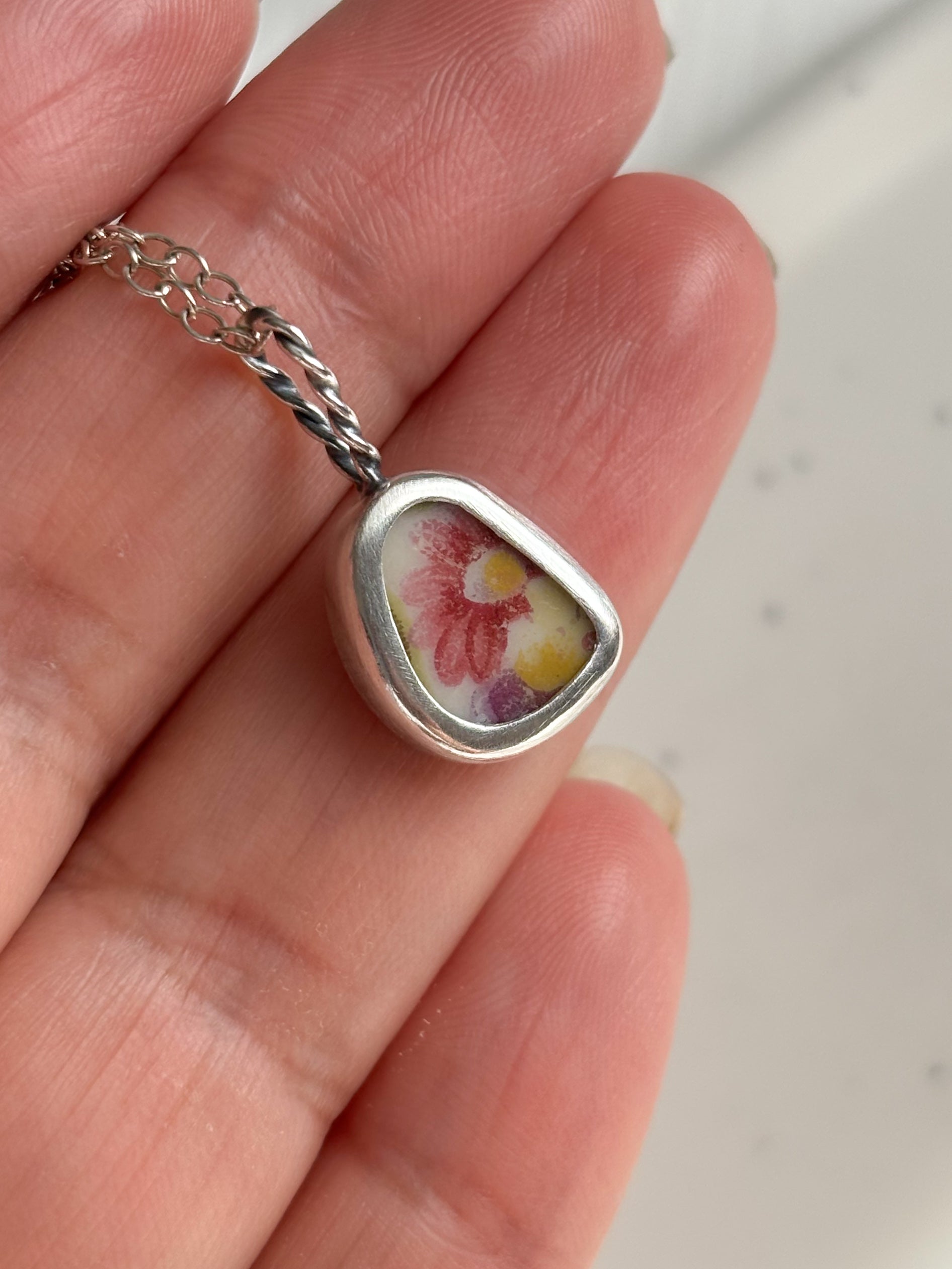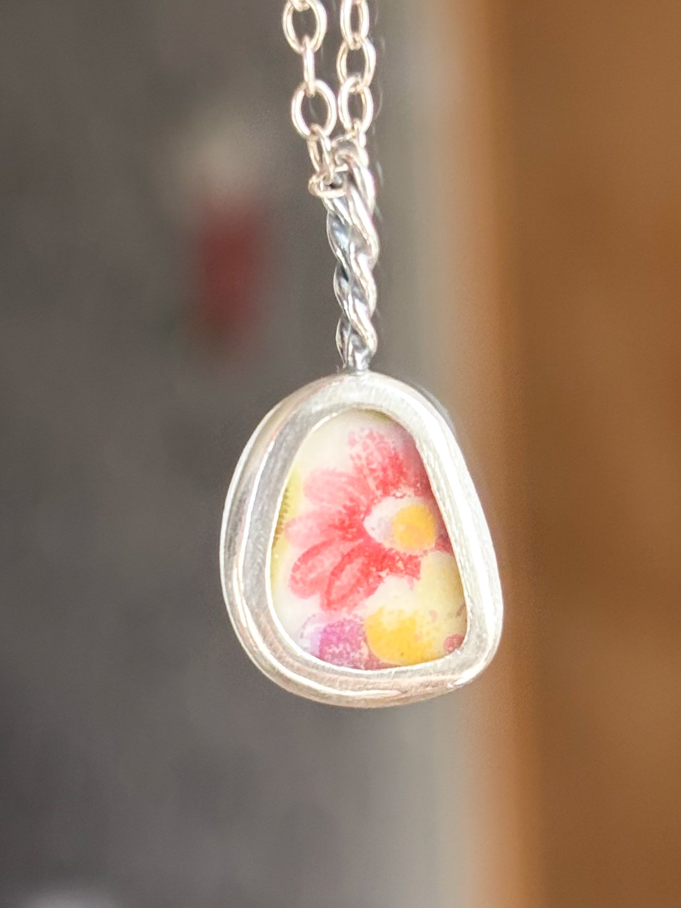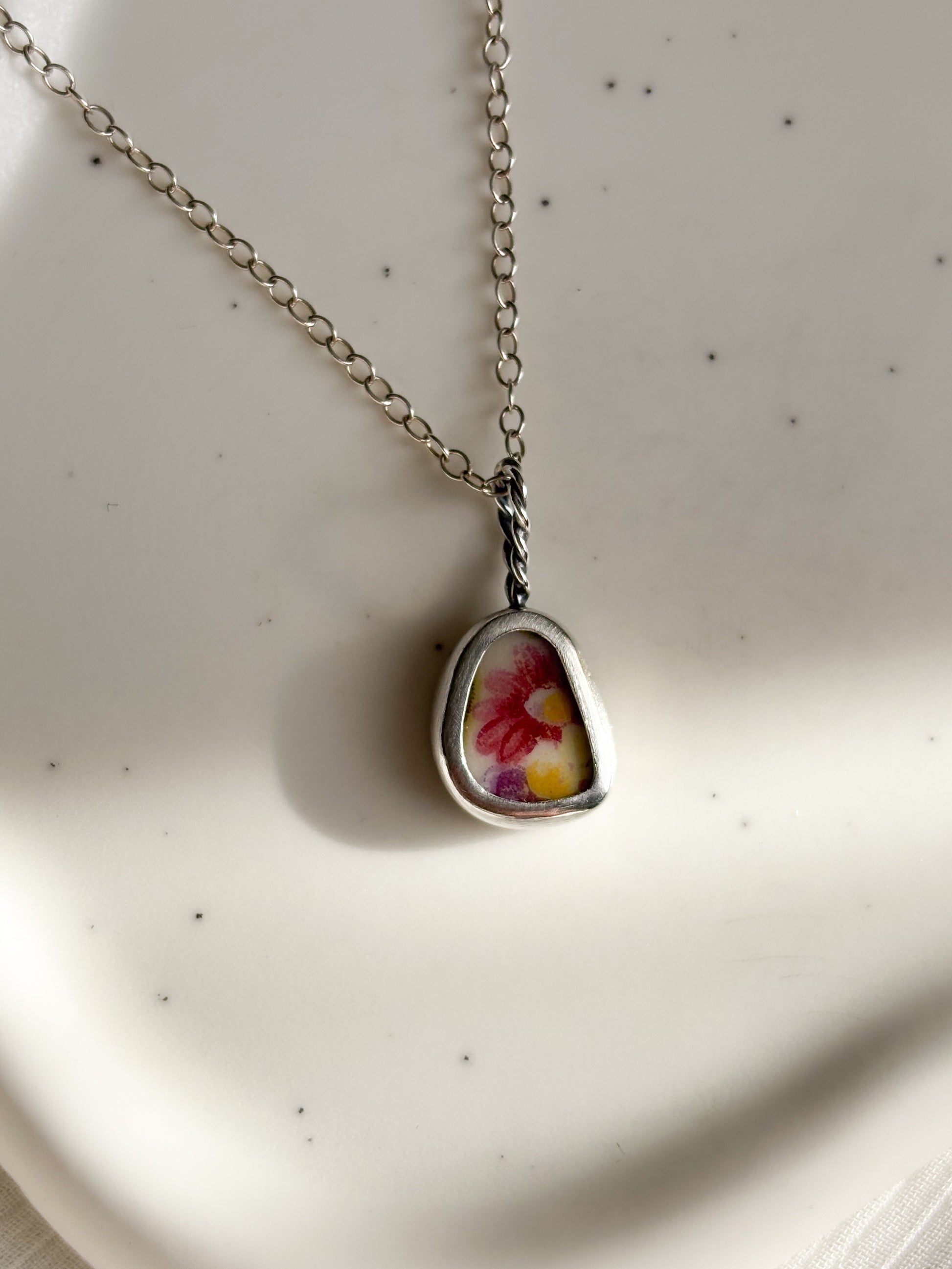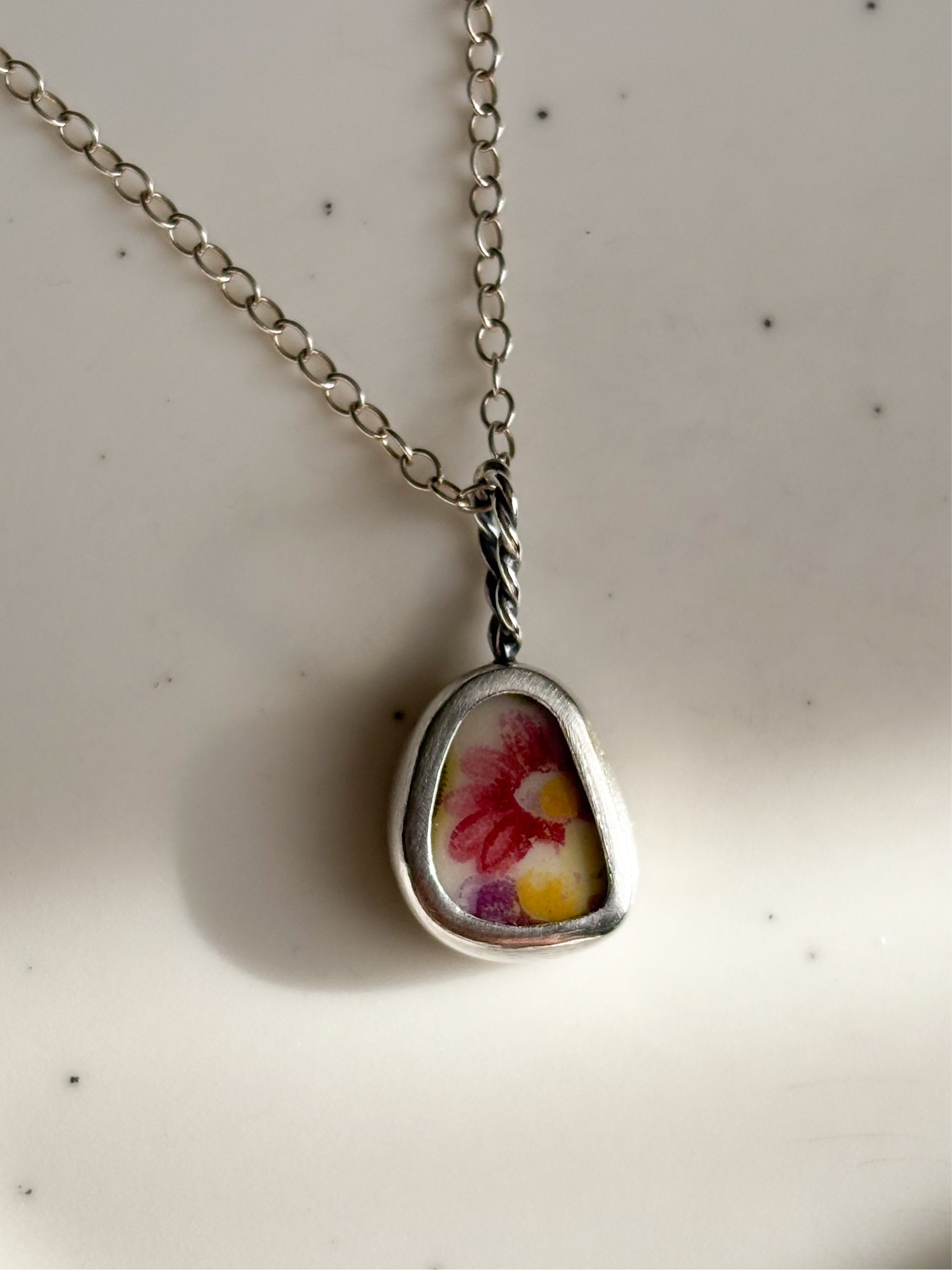 Cada joya nace de fragmentos de cerámica antigua, cortado, pulidos a mano y engastados en plata como pequeños recuerdos que aún perfuman el alma.