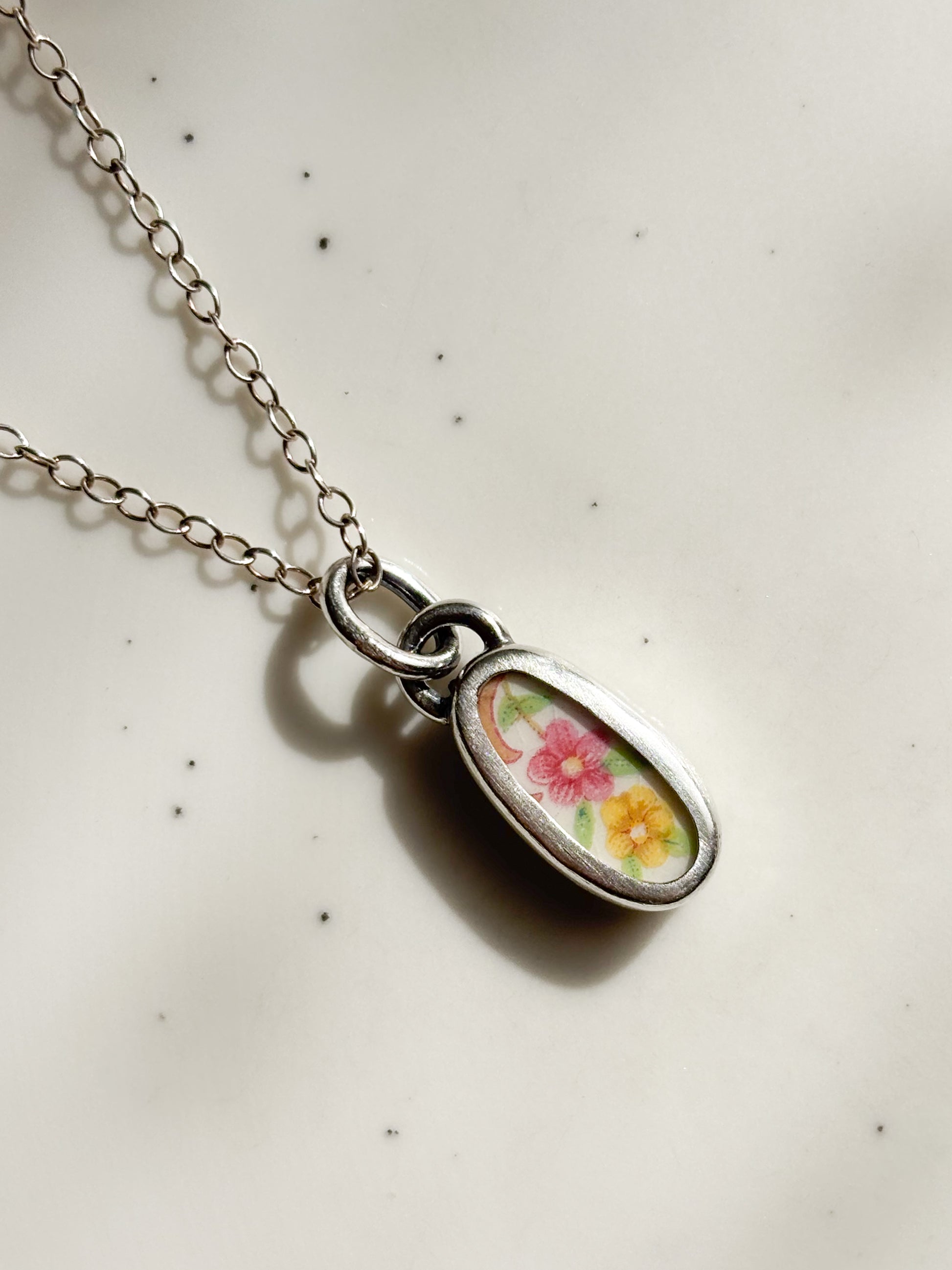 Cada joya nace de fragmentos de cerámica antigua, cortado, pulidos a mano y engastados en plata como pequeños recuerdos que aún perfuman el alma.