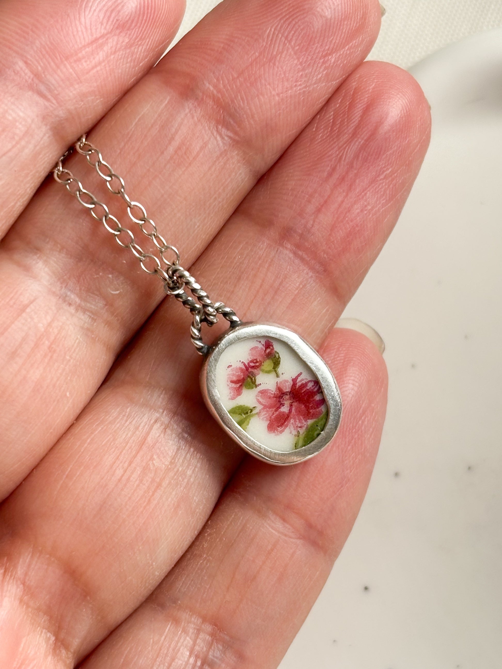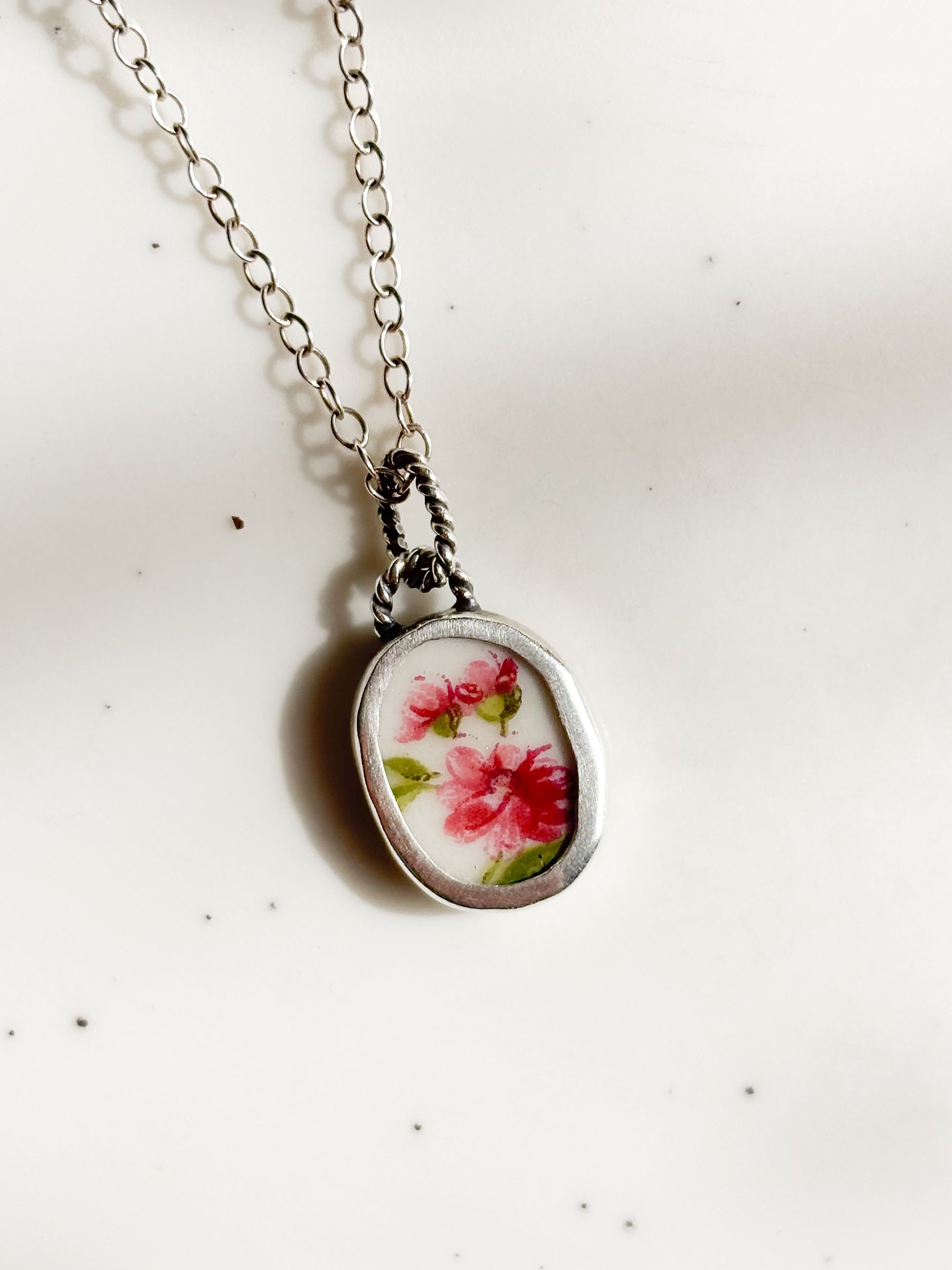 Cada joya nace de fragmentos de cerámica antigua, cortado, pulidos a mano y engastados en plata como pequeños recuerdos que aún perfuman el alma.