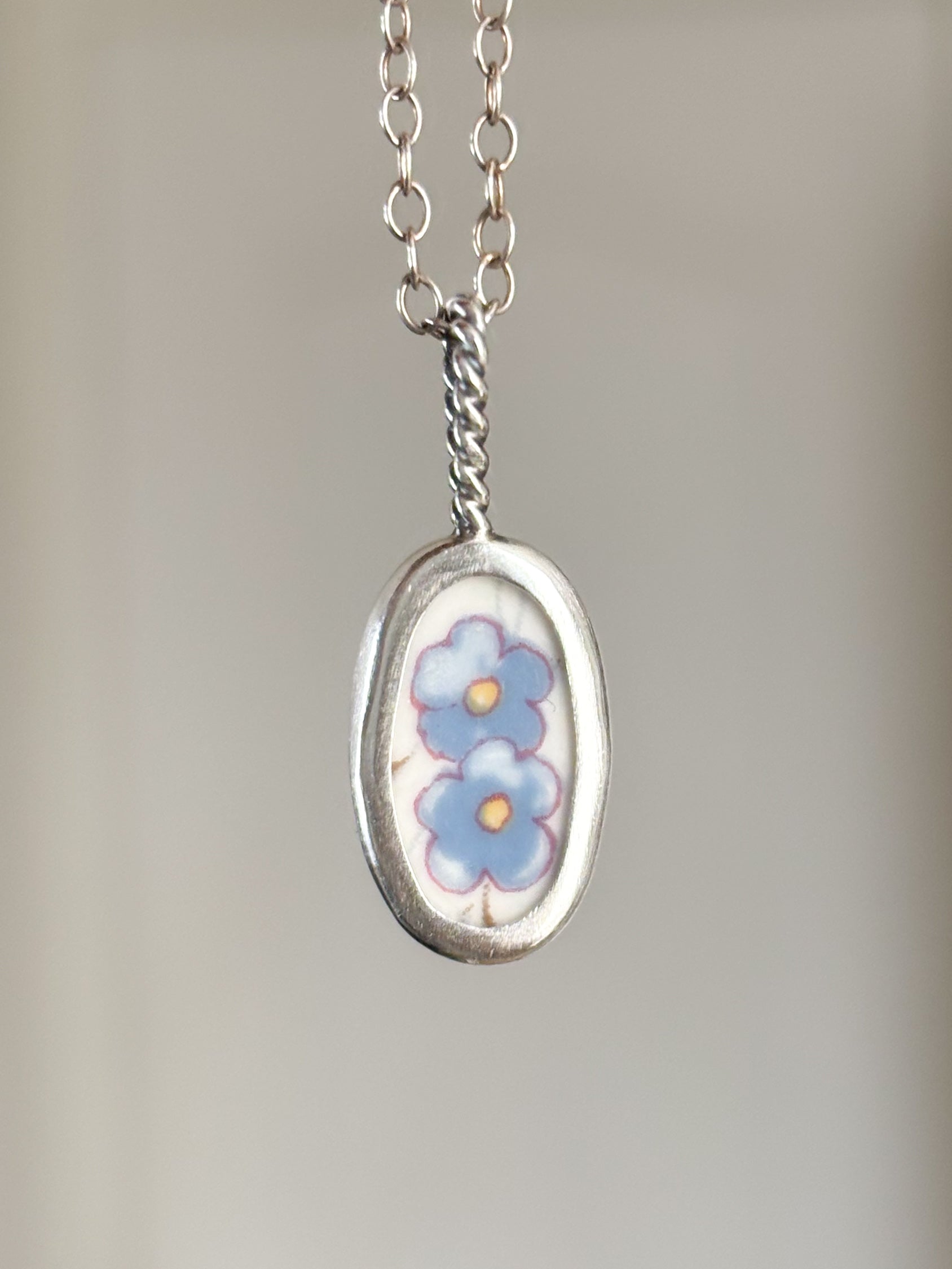 Cada joya nace de fragmentos de cerámica antigua, cortado, pulidos a mano y engastados en plata como pequeños recuerdos que aún perfuman el alma.