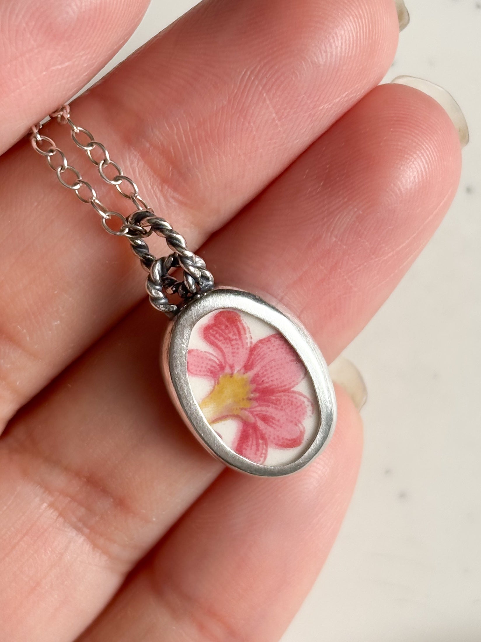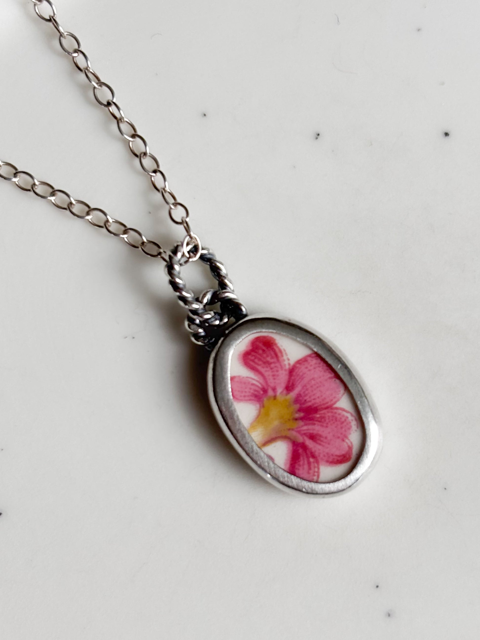 Cada joya nace de fragmentos de cerámica antigua, cortado, pulidos a mano y engastados en plata como pequeños recuerdos que aún perfuman el alma.