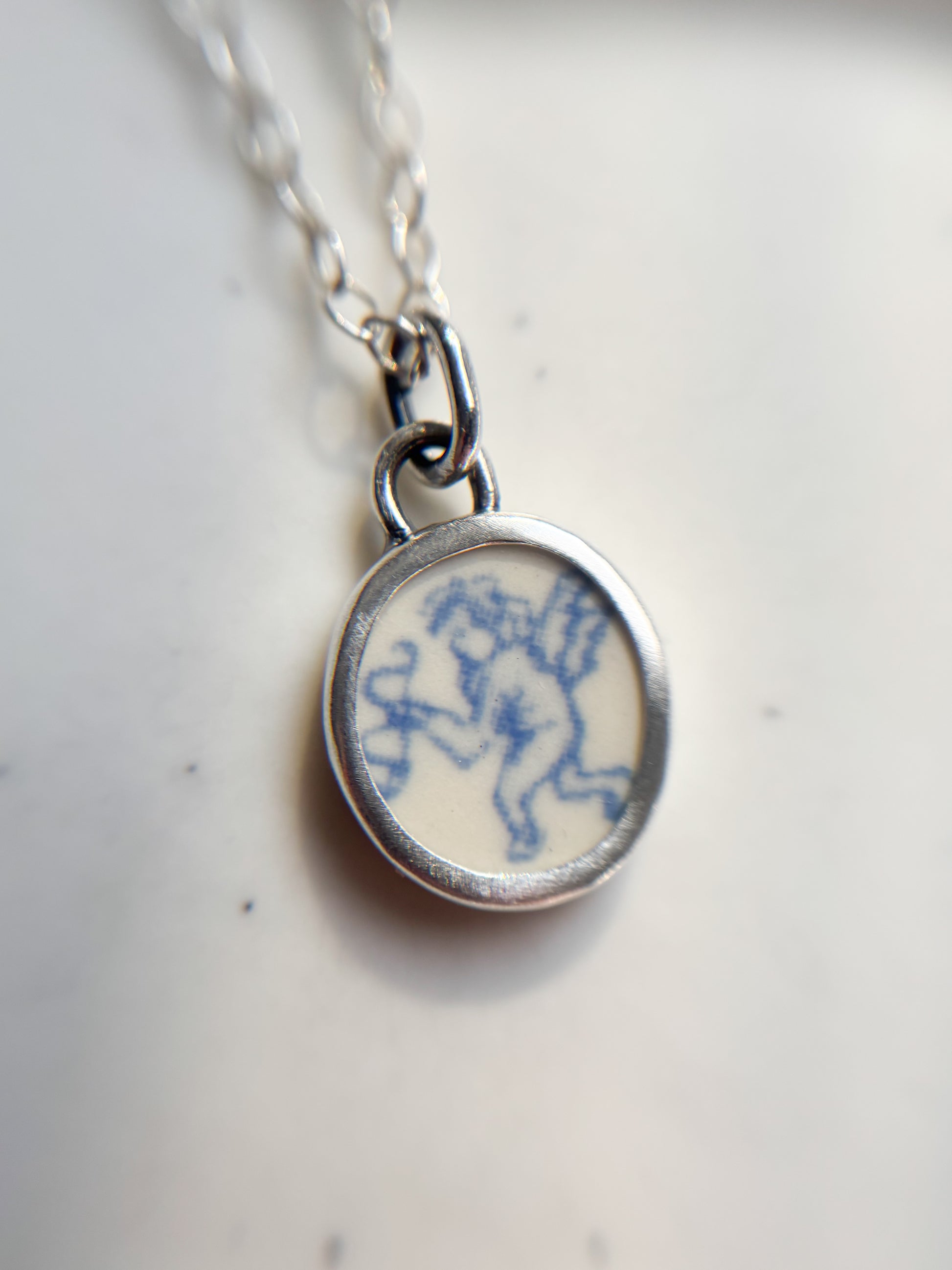 Cada joya nace de fragmentos de cerámica antigua, cortado, pulidos a mano y engastados en plata como pequeños recuerdos que aún perfuman el alma.