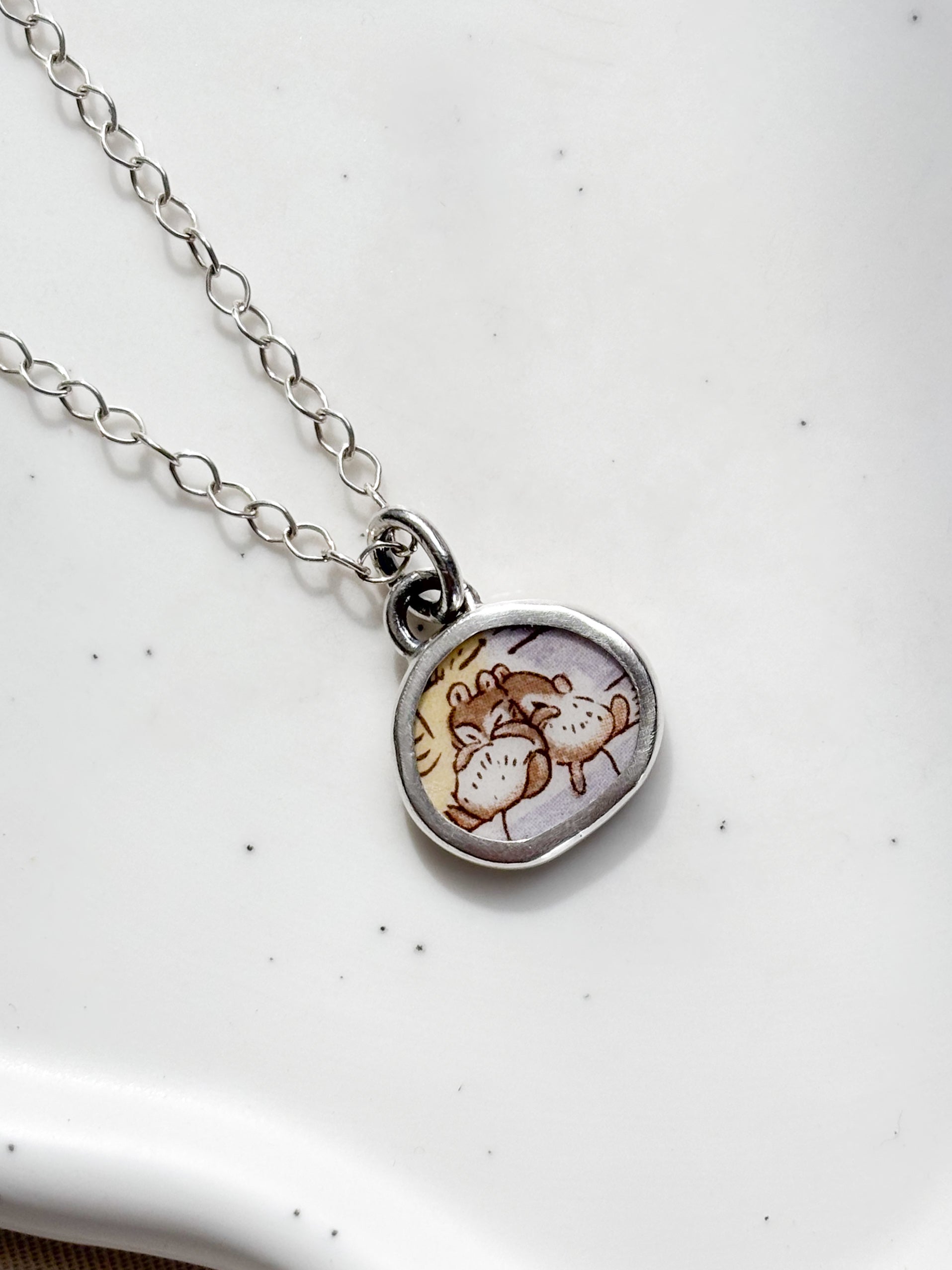 Cada joya nace de fragmentos de cerámica antigua, cortado, pulidos a mano y engastados en plata como pequeños recuerdos que aún perfuman el alma.