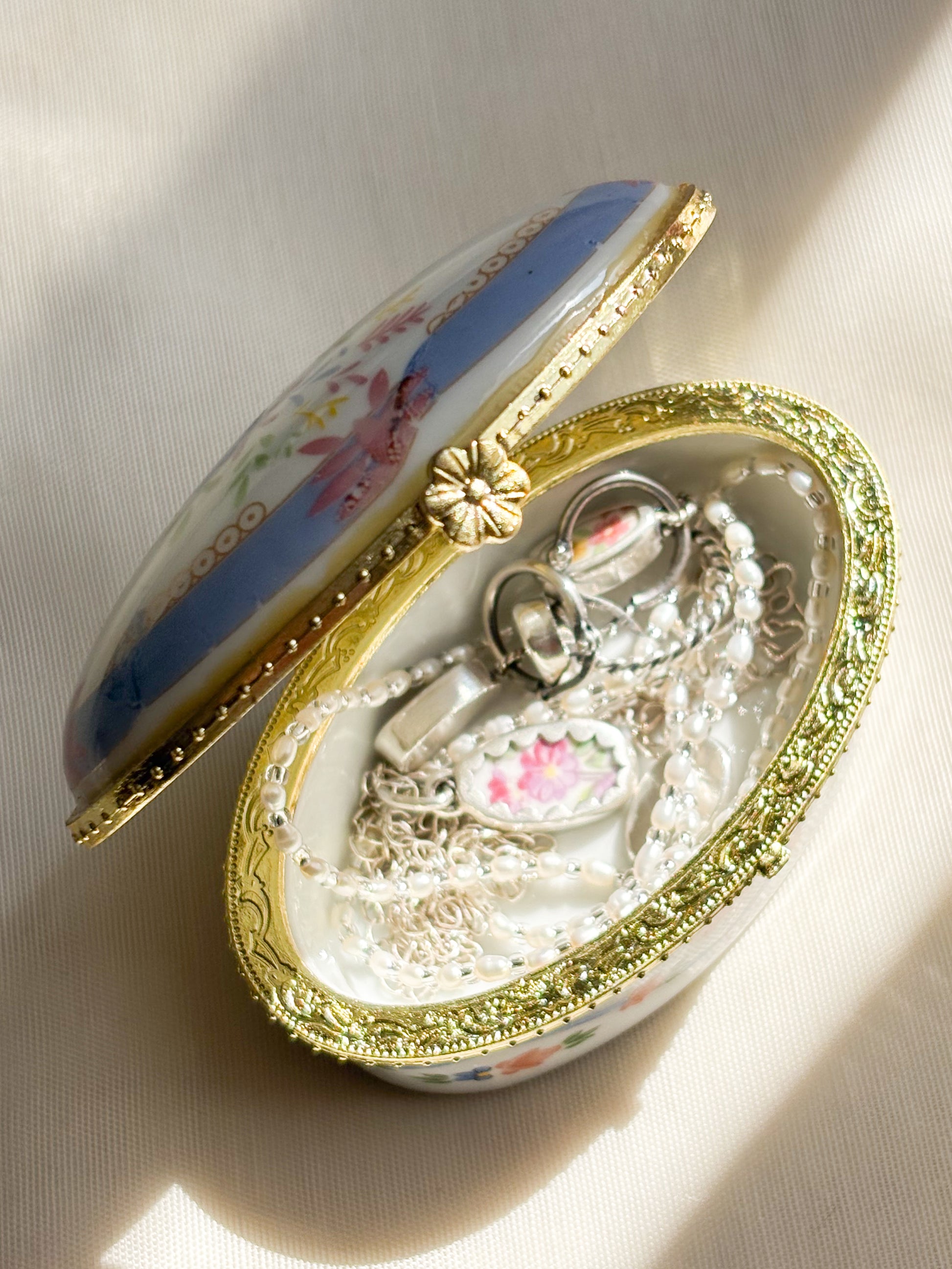 En Albor hemos rescatado delicados joyeros y despojadores de cerámica antigua, piezas llenas de encanto y memoria.